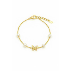 Pulsera de plata con perlas y con circonitas blancas formando una mariposa, ideal para combinar con tus outfits más urbanos, su cierre es de mosquetón y lleva un prolongador para ajustar a la medida adecuada. Sin duda estilo estilo puede ser un clásico atemporal con un toque actual.